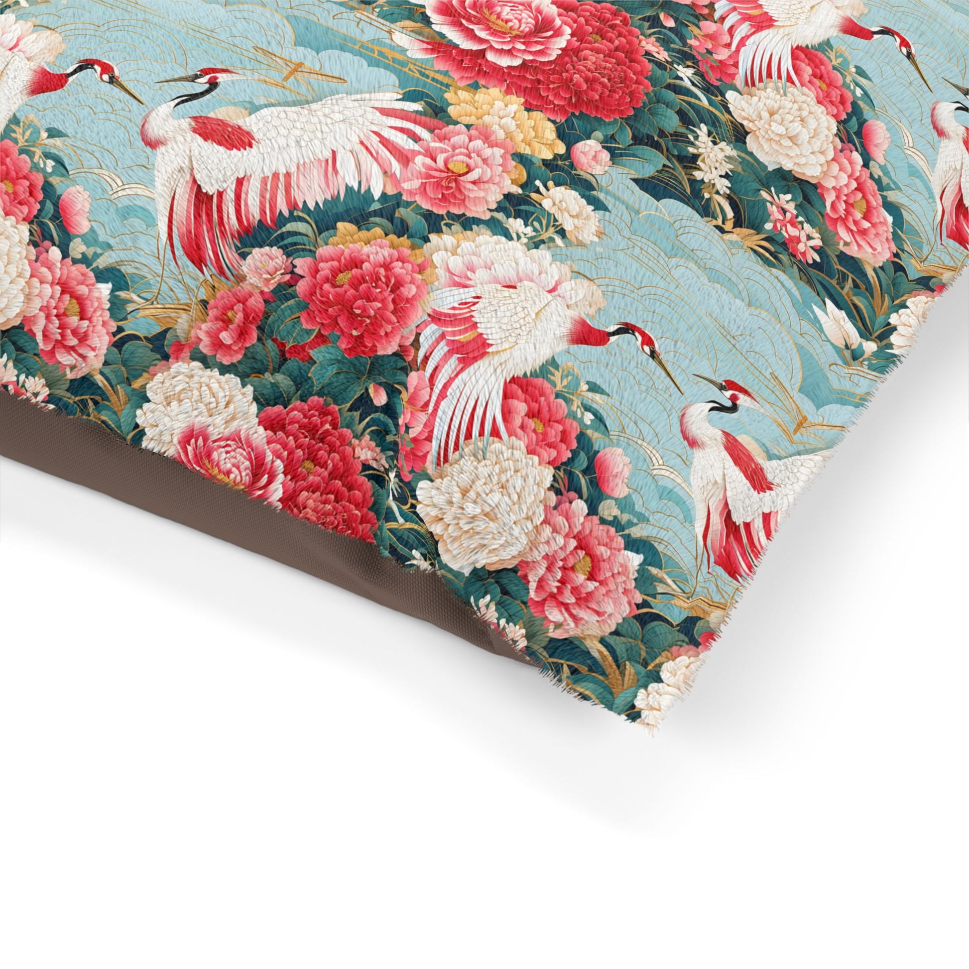 Elegant Floral Pet Bed - Vintage Cranes Design for Cozy Pets